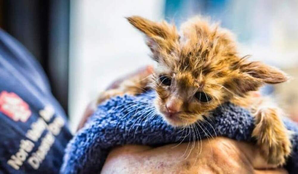 Как котёнка, похожего на Малыша Йоду, спасли во время пожаров в Калифорнии