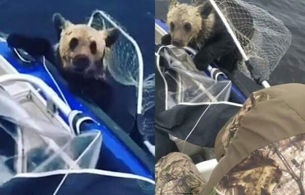 Одного кроху вытащили из воды с помощью сачка, несмотря на крупные габариты и немалый вес. А вот со вторым мишкой пришлось немного повозиться: бедняга оказался в сачке, но боялся перебираться в лодку к людям. Мужчины вынужденно поплыли к берегу, вытаскивая одного из медвежат на буксире прямо в сачке. Добравшись до берега, детенышей выпустили. Медведица была счастлива, что добрые рыбаки спасли ее малышей.