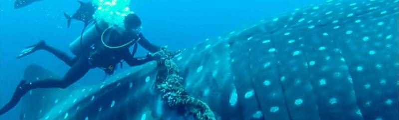 Когда акула медленно проплыла мимо него, дайвер заметил, что вокруг животного была обмотана толстая рыболовная верёвка, которая впивалась в его плавники. Не теряя ни секунды, дайвер достал свой складной нож и принялся разрезать канат